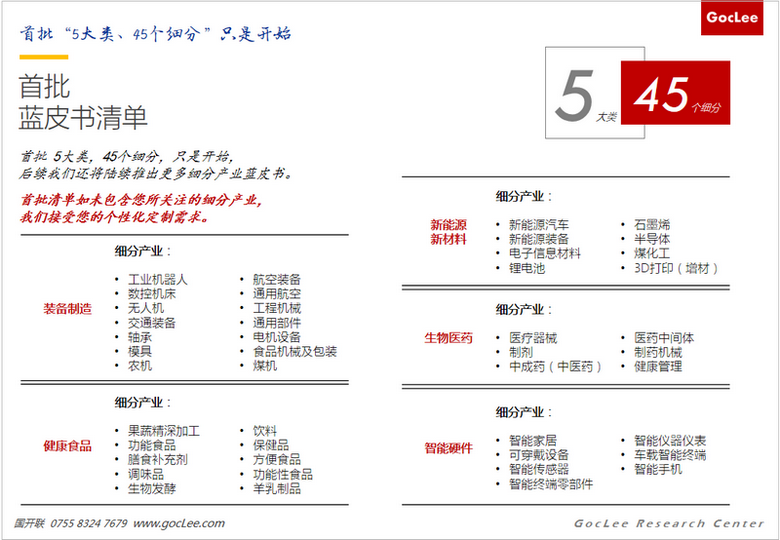 據(jù)了解,國開聯(lián)首批招商藍(lán)皮書將重點(diǎn)圍繞“5大類、45個(gè)細(xì)分”分別推出,且這只是開始,后續(xù)國開聯(lián)還將陸續(xù)推出更多細(xì)分產(chǎn)業(yè)藍(lán)皮書。