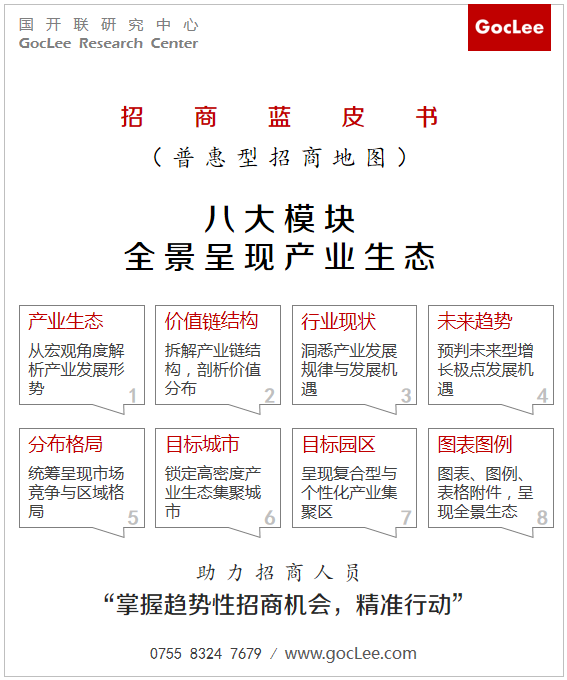 知名產(chǎn)業(yè)研究機構(gòu)——國開聯(lián)研究中心經(jīng)過多年持續(xù)創(chuàng)新實踐,已在精準招商與產(chǎn)業(yè)招商地圖方面形成了獨特的自有專業(yè)服務(wù)體系,此次推出的普惠型產(chǎn)業(yè)招商地圖——招商藍皮書,就是在多年實踐基礎(chǔ)上,兼顧廣大招商人員實際工作中的核心痛點,而首創(chuàng)推出的一款普惠型招商工具書產(chǎn)品,區(qū)別于國開聯(lián)特有“4.0版產(chǎn)業(yè)招商地圖”(系統(tǒng)性招商戰(zhàn)略與行動計劃),就是在滿足招商人員核心訴求基礎(chǔ)上,把費用降下來,做到普惠,以服務(wù)更廣大的招商人員。