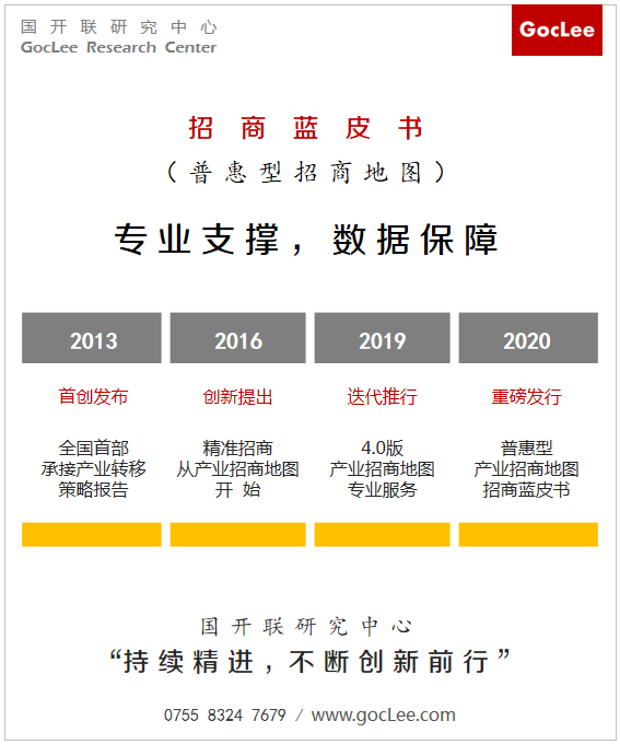 普惠型產(chǎn)業(yè)招商地圖——招商藍皮書是國開聯(lián)研究中心依托自身產(chǎn)業(yè)長期跟蹤研究積累和“4.0版產(chǎn)業(yè)招商地圖”應(yīng)用邏輯,于2020年初首創(chuàng)推出的精準招商工具書型數(shù)據(jù)產(chǎn)品。