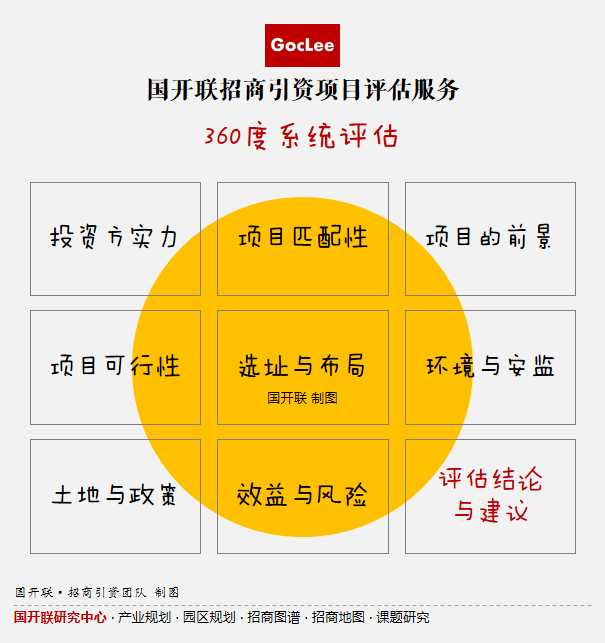 國開聯(lián)招商引資服務(wù)團隊指出,升級后的“招商引資項目評估服務(wù)”體系將由兩大版塊共同構(gòu)成,具體為:“一般性基礎(chǔ)評估”和“360度系統(tǒng)評估”。