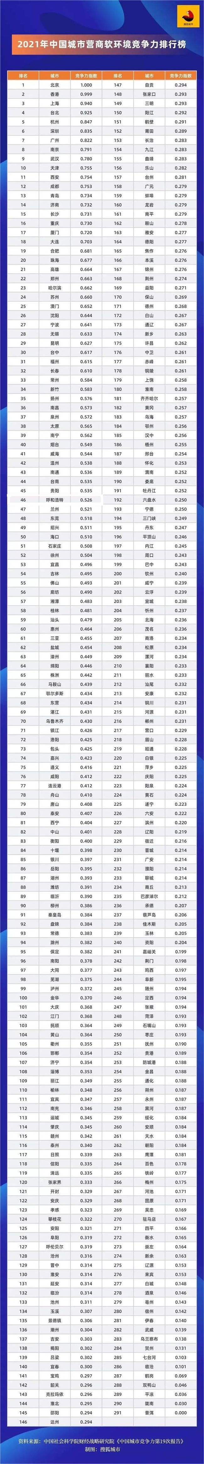 2021年中國城市營商軟環(huán)境競爭力排行榜
