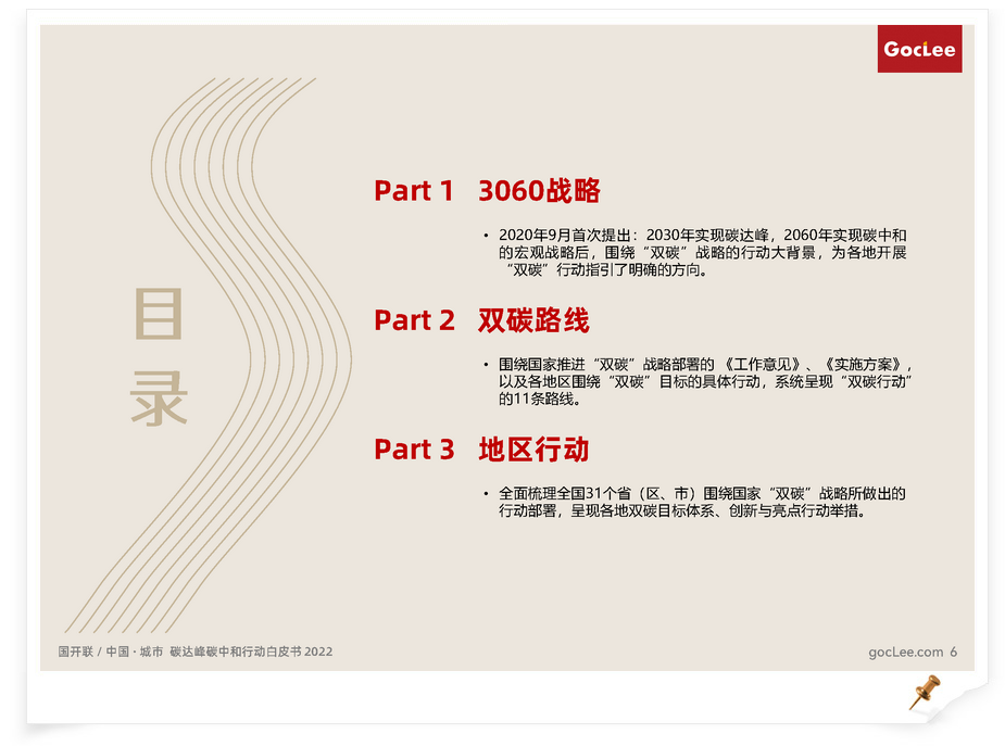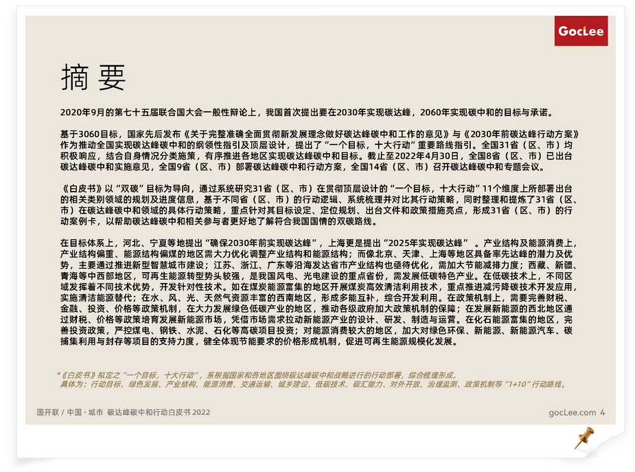 《中國(guó) · 城市 碳達(dá)峰碳中和行動(dòng)白皮書(shū)2022》是由國(guó)開(kāi)聯(lián)可持續(xù)發(fā)展團(tuán)隊(duì)圍繞國(guó)家碳達(dá)峰碳中和戰(zhàn)略部署,綜合各地區(qū)具體推行的“雙碳行動(dòng)”而進(jìn)行了專項(xiàng)研究,旨在與各領(lǐng)域雙碳戰(zhàn)略參與者分享國(guó)家雙碳戰(zhàn)略形勢(shì)和各地雙碳行動(dòng)舉措,幫助各領(lǐng)域雙碳戰(zhàn)略參與者更加清晰、全面的了解雙碳戰(zhàn)略,并有效的開(kāi)展雙碳行動(dòng)。