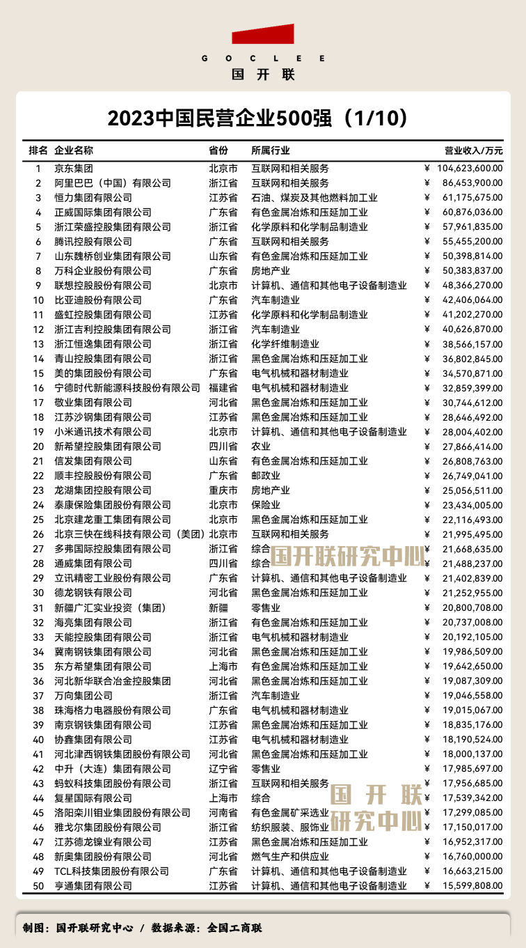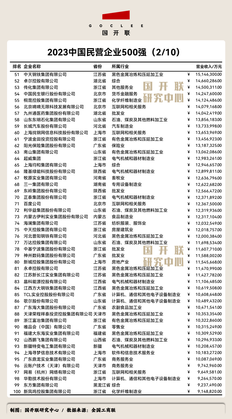 后附:《2023中國民營企業(yè)500強》榜單