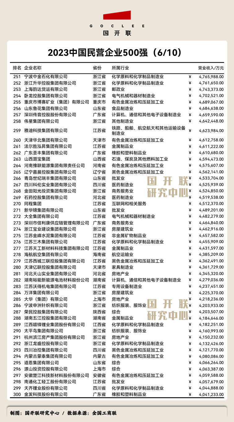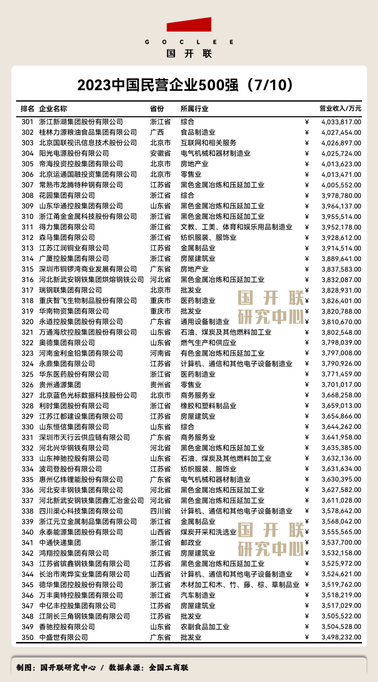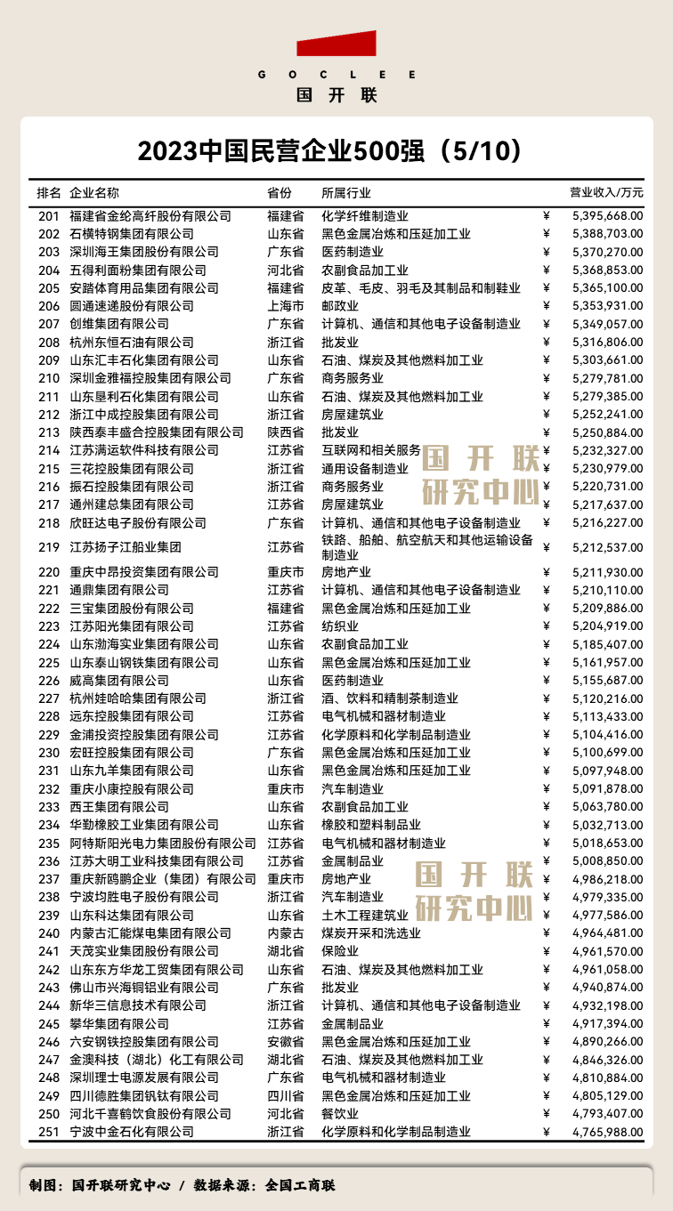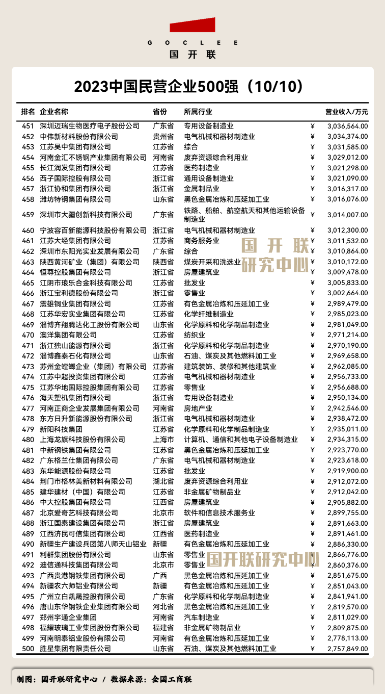 附:《2023中國民營企業(yè)500強》完整榜單