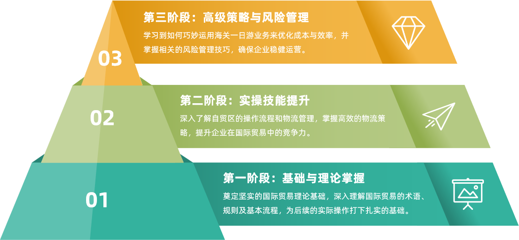進(jìn)入《國(guó)際貿(mào)易之自貿(mào)區(qū)主要操作流程與物流管理》課程學(xué)習(xí),學(xué)員將深入了解自貿(mào)區(qū)的操作流程和物流管理,掌握高效的物流策略,提升企業(yè)在國(guó)際貿(mào)易中的競(jìng)爭(zhēng)力。