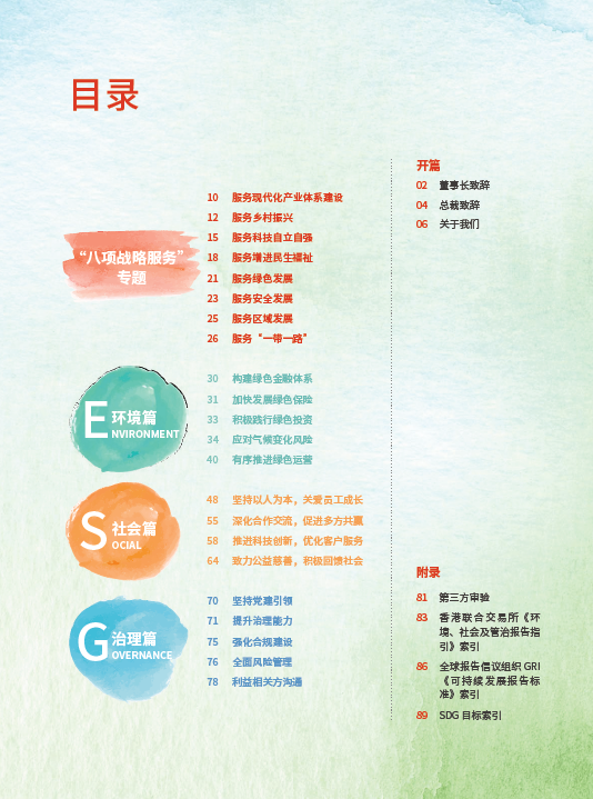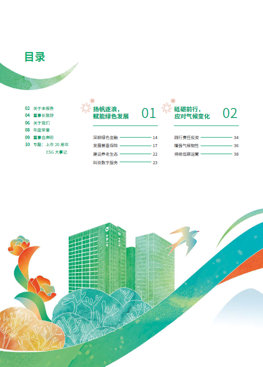 作為保險行業(yè)龍頭,也是市值規(guī)模靠前的保險公司,其年度ESG報告皆向外界展現(xiàn)了較高水準(zhǔn),不論從內(nèi)容豐富程度,還是ESG體系的設(shè)置、報告視覺效果,這些企業(yè)所披露的ESG報告均有值得業(yè)界學(xué)習(xí)和探討之處。