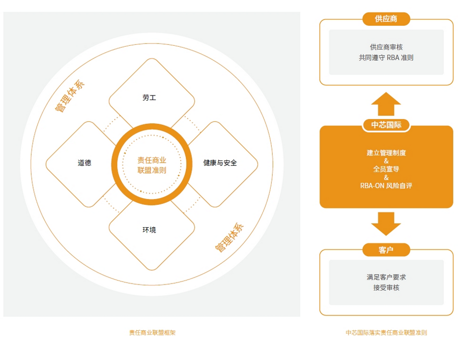 自2013 年,中芯國際一直采用責(zé)任商業(yè)聯(lián)盟在線風(fēng)險評估(RBA-Online)系統(tǒng),按時完成RBA 設(shè)計的標(biāo)準(zhǔn)化風(fēng)險評估范本——自我評估問卷(SAQ)以評估公司整體及各廠的環(huán)境、健康安全、勞工權(quán)益與道德管理狀況,并針對潛在風(fēng)險開展持續(xù)改善計劃。此外,在自身遵守RBA 準(zhǔn)則的同時,我們要求供應(yīng)商同步依照該準(zhǔn)則要求開展經(jīng)營活動,以加強(qiáng)供應(yīng)鏈的穩(wěn)定性與可靠性。
