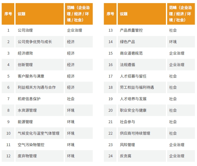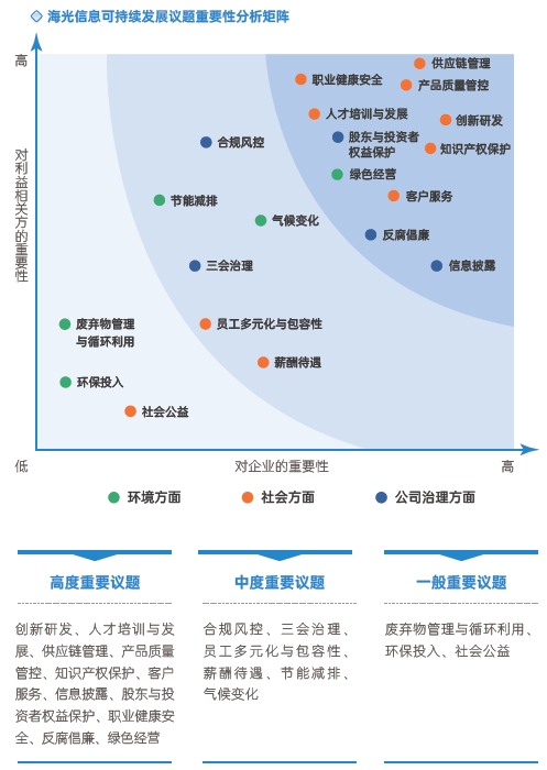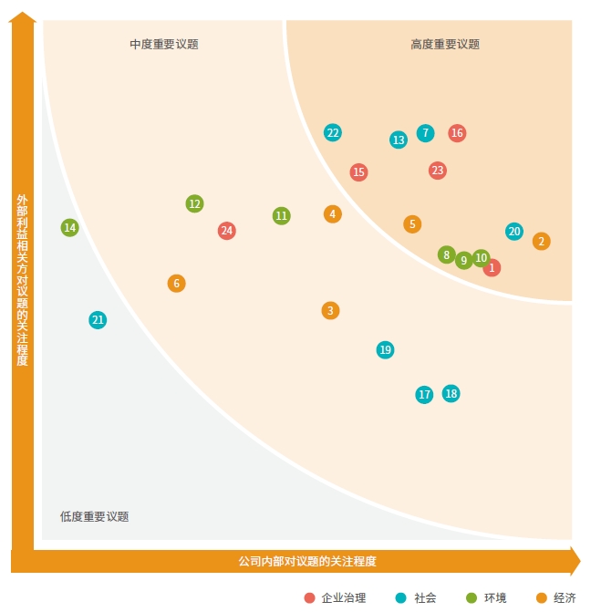 公司基于可持續(xù)發(fā)展宏觀環(huán)境和自身發(fā)展規(guī)劃,以內(nèi)外部利益相關(guān)方關(guān)注重點為導(dǎo)向,結(jié)合行業(yè)特點及戰(zhàn)略需求,開展社會責(zé)任重點議題的識別。