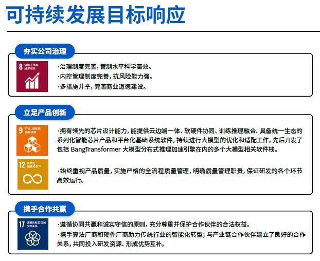 2023 年,寒武紀(jì)積極回應(yīng)聯(lián)合國可持續(xù)發(fā)展目標(biāo)(下稱“SDGs”),將SDGs 融入到企業(yè)社會責(zé)任管理工作中,切實履行企業(yè)社會責(zé)任。
