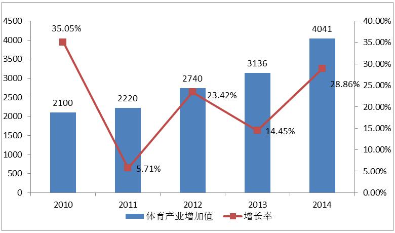 國家體育總局公布的數(shù)據(jù)顯示,我國體育及相關(guān)產(chǎn)業(yè)增加值占GDP的比重約為0.6%,而世界主要國家該數(shù)據(jù)約為2.0%至3.0%,可以看出整體規(guī)模相比世界主要國家該比例仍然較小。截至2014年底,中國體育產(chǎn)業(yè)總規(guī)模約為1.36萬億元,預(yù)計到2020年底、2025年底分別將達(dá)到3萬億元、5萬億元,年均增長速度約為14%。這組數(shù)據(jù)可見,我國在體育產(chǎn)業(yè)上有著較為良好的發(fā)展前景,更有提出體育產(chǎn)業(yè)黃金10年的說法,對于各行各業(yè)都極具吸引力。