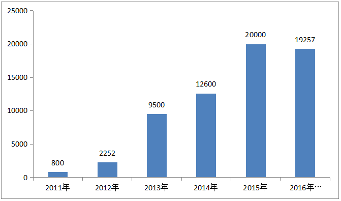 圖表2 2011-2015年國產(chǎn)工業(yè)機(jī)器人銷量(單位:臺(tái))