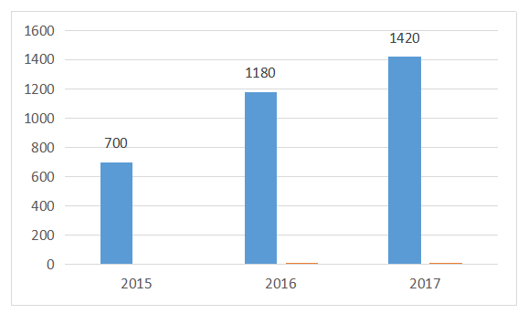 圖表4 2015-2017 年新增造雪機數(shù)量統(tǒng)計
