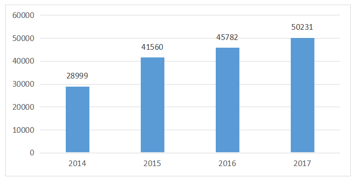 圖表5 2014-2017 年新增雙板進口數(shù)量