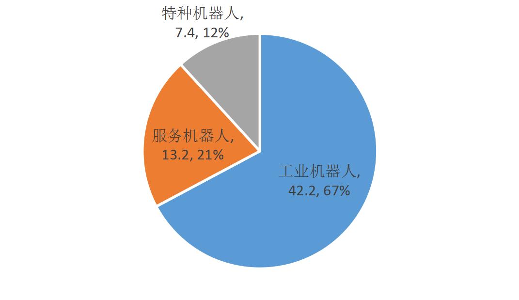 2017年,工業(yè)機(jī)器人是機(jī)器人市場主要產(chǎn)品,市場規(guī)模為42.2億美元,所占整體比重高達(dá)67.2%。此外,得益于互聯(lián)網(wǎng)巨頭對機(jī)器人在服務(wù)場景應(yīng)用的投入,服務(wù)機(jī)器人所占比重也超過20%,市場規(guī)模達(dá)到13.2億美元。三大領(lǐng)域具體發(fā)展情況如下