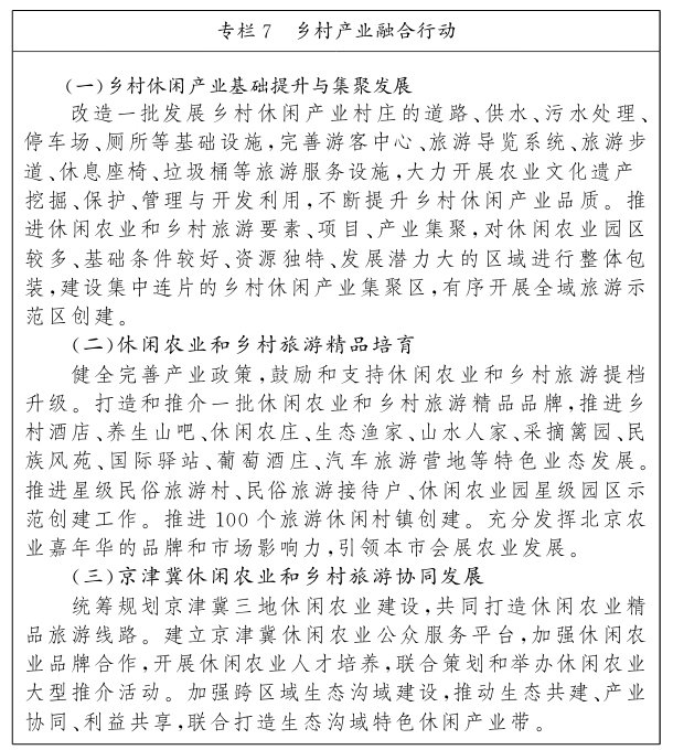 發(fā)展鄉(xiāng)村特色文化產(chǎn)業(yè)。圍繞大運(yùn)河、長(zhǎng)城、西山永定河“三大文化帶”建設(shè),打造一批充分體現(xiàn)古都文化、京味文化、紅色文化、創(chuàng)新文化的鄉(xiāng)村文化產(chǎn)業(yè)展示區(qū)。鼓勵(lì)建設(shè)集農(nóng)耕體驗(yàn)、田園觀光、科普教育、文化創(chuàng)意、鄉(xiāng)村游樂于一體的休閑農(nóng)業(yè)創(chuàng)意園。推進(jìn)文化創(chuàng)意和設(shè)計(jì)服務(wù)與農(nóng)業(yè)聯(lián)動(dòng)發(fā)展,提高農(nóng)業(yè)創(chuàng)意和設(shè)計(jì)水平。深入挖掘民族鄉(xiāng)村文化資源,建設(shè)少數(shù)民族特色村鎮(zhèn)。大力推動(dòng)農(nóng)村地區(qū)實(shí)施傳統(tǒng)工藝振興計(jì)劃,培育具有京味特色的傳統(tǒng)工藝品牌。積極開發(fā)北京傳統(tǒng)節(jié) 日文化用品、民間藝術(shù)和民俗表演項(xiàng)目,促進(jìn)文化資源與現(xiàn)代消費(fèi)需求有效對(duì)接。推動(dòng)鄉(xiāng)村文化與鄉(xiāng)村旅游、休閑農(nóng)業(yè)等深度融合,以文化振興促進(jìn)農(nóng)村一二三產(chǎn)業(yè)融合發(fā)展。