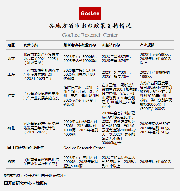 從這些政策的導(dǎo)向來看,主要就是聚焦在氫燃料汽車(主要為城市公交大巴車和物流車)的推廣、燃料電池核心技術(shù)研發(fā)、加氫基礎(chǔ)設(shè)施建設(shè)以及氫能示范城區(qū)的打造上。當(dāng)然,從政策落實情況來看,各省市之間也是積極結(jié)合之間的地域優(yōu)勢,例如廣東省,其明確提出以產(chǎn)業(yè)園區(qū)的形式推動燃料電池產(chǎn)業(yè)的發(fā)展,同時特別強調(diào)要支持傳統(tǒng)能源重鎮(zhèn)茂名發(fā)展以氫源供應(yīng)、氫能儲運以及設(shè)備等為特色的氫能產(chǎn)業(yè),形成錯位競爭格局。