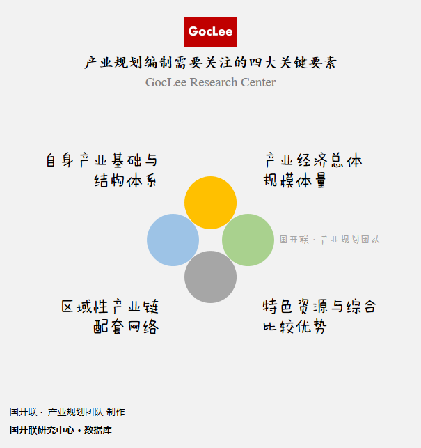 從產(chǎn)業(yè)規(guī)劃需要關(guān)注的關(guān)鍵要素來看,主要涵蓋四個(gè)維度,具體包括:產(chǎn)業(yè)經(jīng)濟(jì)總體規(guī)模體量、自身產(chǎn)業(yè)基礎(chǔ)與結(jié)構(gòu)體系、區(qū)域性產(chǎn)業(yè)鏈配套網(wǎng)絡(luò)、特色資源與綜合比較優(yōu)勢等。