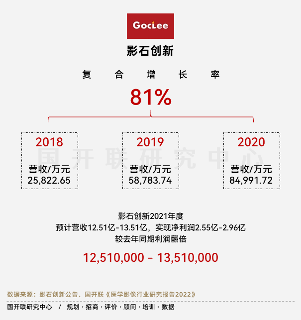 國(guó)開聯(lián)《醫(yī)學(xué)影像行業(yè)研究報(bào)告2022》數(shù)據(jù)顯示,聯(lián)影醫(yī)療、鷹瞳科技和影石創(chuàng)新過去3年來均實(shí)現(xiàn)了營(yíng)收、利潤(rùn)的高增長(zhǎng)。