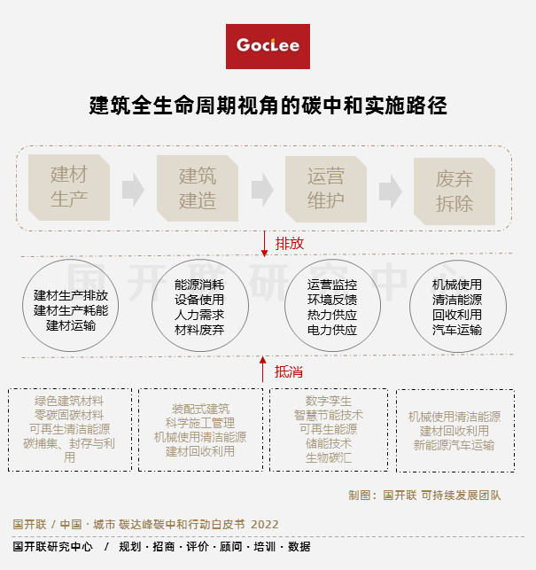 從整個建筑生命周期上,第一個環(huán)節(jié)是建材生產(chǎn),應(yīng)考慮建材生產(chǎn)排放、建材生產(chǎn)耗能、建材運輸?shù)?,包括運用生物材料等零碳固碳材料替代、可再生清潔能源、新能源汽車運輸、碳捕集,封存和利用技術(shù)、通過負(fù)碳技術(shù)、能源更新實現(xiàn)綠色建筑材料生產(chǎn)等。
