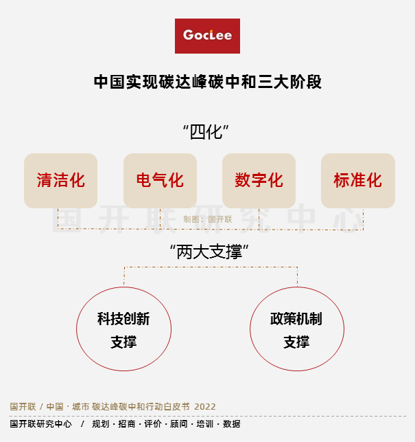 碳達(dá)峰碳中和關(guān)鍵技術(shù)路徑主要是“四化”和“兩個(gè)支撐”,“四化”指的是清潔化、電氣化、數(shù)字化、標(biāo)準(zhǔn)化,“兩個(gè)支撐”指的是科技創(chuàng)新支撐、政策機(jī)制支撐。