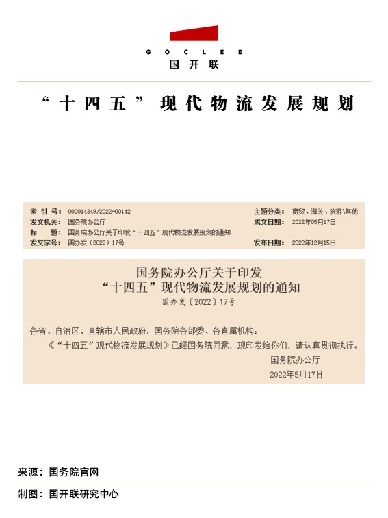 12月15日,《“十四五”現(xiàn)代物流發(fā)展規(guī)劃》(以下簡稱《規(guī)劃》)正式發(fā)布,為我國“十四五”期間(也就是截至2025年)現(xiàn)代物流業(yè)的發(fā)展明確了戰(zhàn)略方向和行動路線。