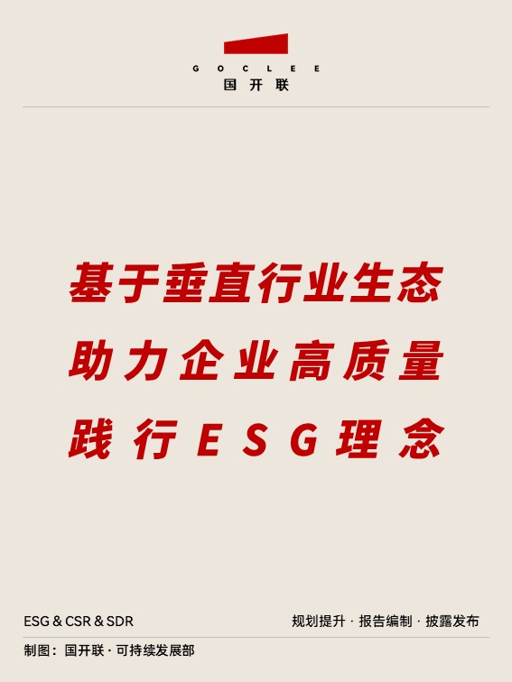 國(guó)開聯(lián) · 可持續(xù)發(fā)展部隸屬于國(guó)開聯(lián)研究中心,依托國(guó)開聯(lián)研究中心在產(chǎn)業(yè)經(jīng)濟(jì)領(lǐng)域長(zhǎng)期積淀的深厚優(yōu)勢(shì),基于垂直行業(yè)生態(tài),助力企業(yè)高質(zhì)量實(shí)踐ESG。專注提供ESG & CSR & SDR報(bào)告編制與披露、ESG & CSR& SDR管理提升與戰(zhàn)略規(guī)劃、碳盤查&碳核查、碳達(dá)峰碳中和戰(zhàn)略規(guī)劃等研究、咨詢、培訓(xùn)服務(wù)。