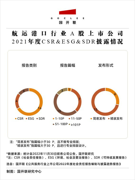 第一,在當(dāng)前行業(yè)形勢(shì)和企業(yè)共識(shí)的引領(lǐng)下,預(yù)計(jì)2022年度航運(yùn)港口行業(yè)A股上市獨(dú)立披露社會(huì)責(zé)任報(bào)告(含ESG、SDR)的披露率和報(bào)告質(zhì)量都將得到進(jìn)一步的提升;