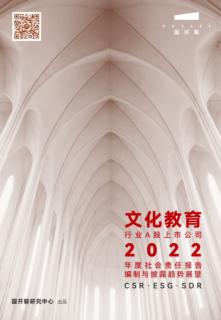 12月27日,國開聯(lián)研究中心發(fā)布《文化教育行業(yè)A股上市公司2022年度社會(huì)責(zé)任報(bào)告編制與披露趨勢(shì)展望報(bào)告》(以下簡稱《報(bào)告》),對(duì)我國A股文化教育行業(yè)上市公司2021年度社會(huì)責(zé)任報(bào)告(含ESG報(bào)告、可持續(xù)發(fā)展報(bào)告SDR)披露情況及特征進(jìn)行了系統(tǒng)剖析,同時(shí)結(jié)合當(dāng)前形勢(shì),對(duì)我國A股文化教育行業(yè)上市公司2022年度報(bào)告編制與披露趨勢(shì)進(jìn)行了展望和預(yù)判。