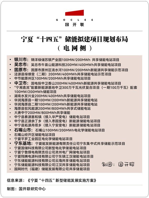 寧夏“十四五”儲(chǔ)能擬建項(xiàng)目規(guī)劃布局(電源側(cè))