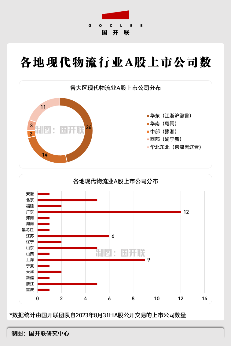 從地區(qū)分布來(lái)看,國(guó)開聯(lián)研究中心的統(tǒng)計(jì)數(shù)據(jù)顯示,我國(guó)A股現(xiàn)代物流業(yè)上市公司,遍布于我國(guó)17個(gè)省(區(qū)、市),但多集中于珠三角、長(zhǎng)三角和京津冀,中西部物流業(yè)上市公司極少。其中,廣東現(xiàn)代物流業(yè)上市公司數(shù)量最多,高達(dá)12家,上?,F(xiàn)代物流業(yè)上市公司數(shù)量次多,共擁有9家。